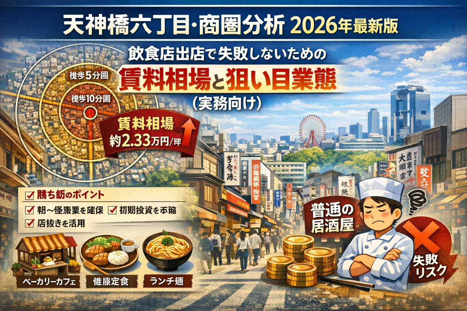 天神橋六丁目・商圏分析 2026年最新版 飲食店出店で失敗しないための賃料相場と狙い目業態(実務向け)